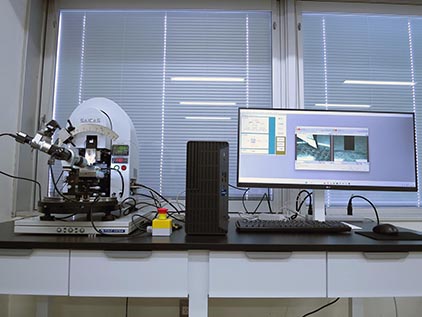 機器概要SAICASとも呼ばれ、カメラで観察しながら特定の場所について切り刃で試料表面から極浅い角度で斜めに切削し、フィルム、膜等の内部の露出や膜強度の測定を行います。主な用途極浅く斜めに切削加工することで多層膜、電極、メッキ、塗膜等の深さ方向の変化を疑似的に拡大でき、表面分析や熱分析の前処理として使用されます。剥離強度とせん断強度の測定も行えます。 |